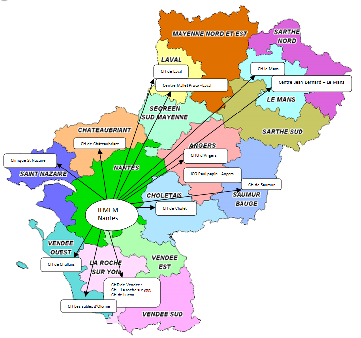 Les lieux de stages se répartissent entre le CHU de Nantes et les établissements de soins de la Région Pays de la Loire.