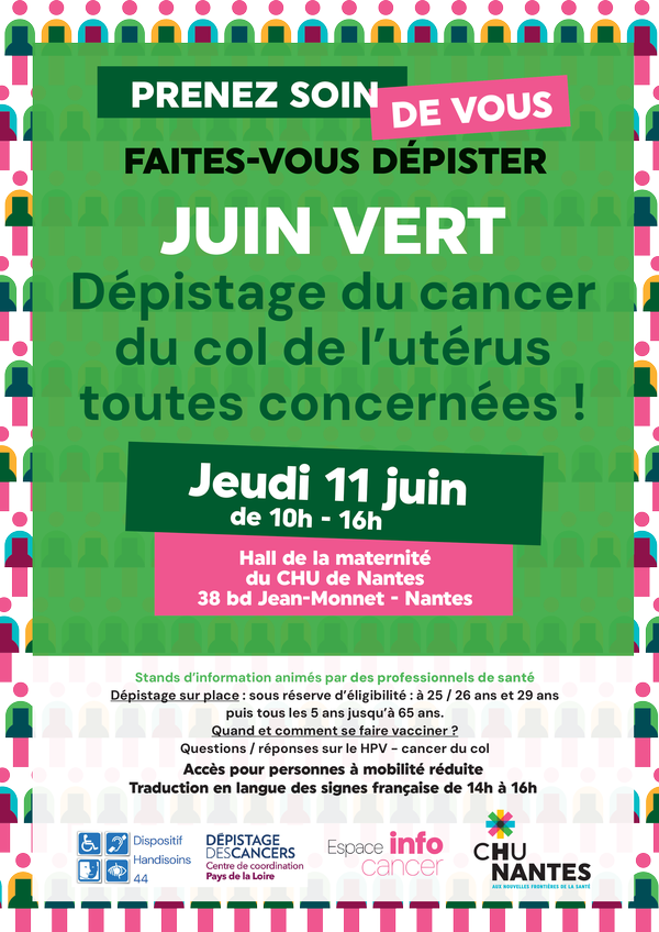 Nous vous donnons rendez-vous le jeudi 11 juin, dans le cadre de l'opération nationale "Juin vert", le mois de sensibilisation sur le dépistage du cancer du col de l’utérus.