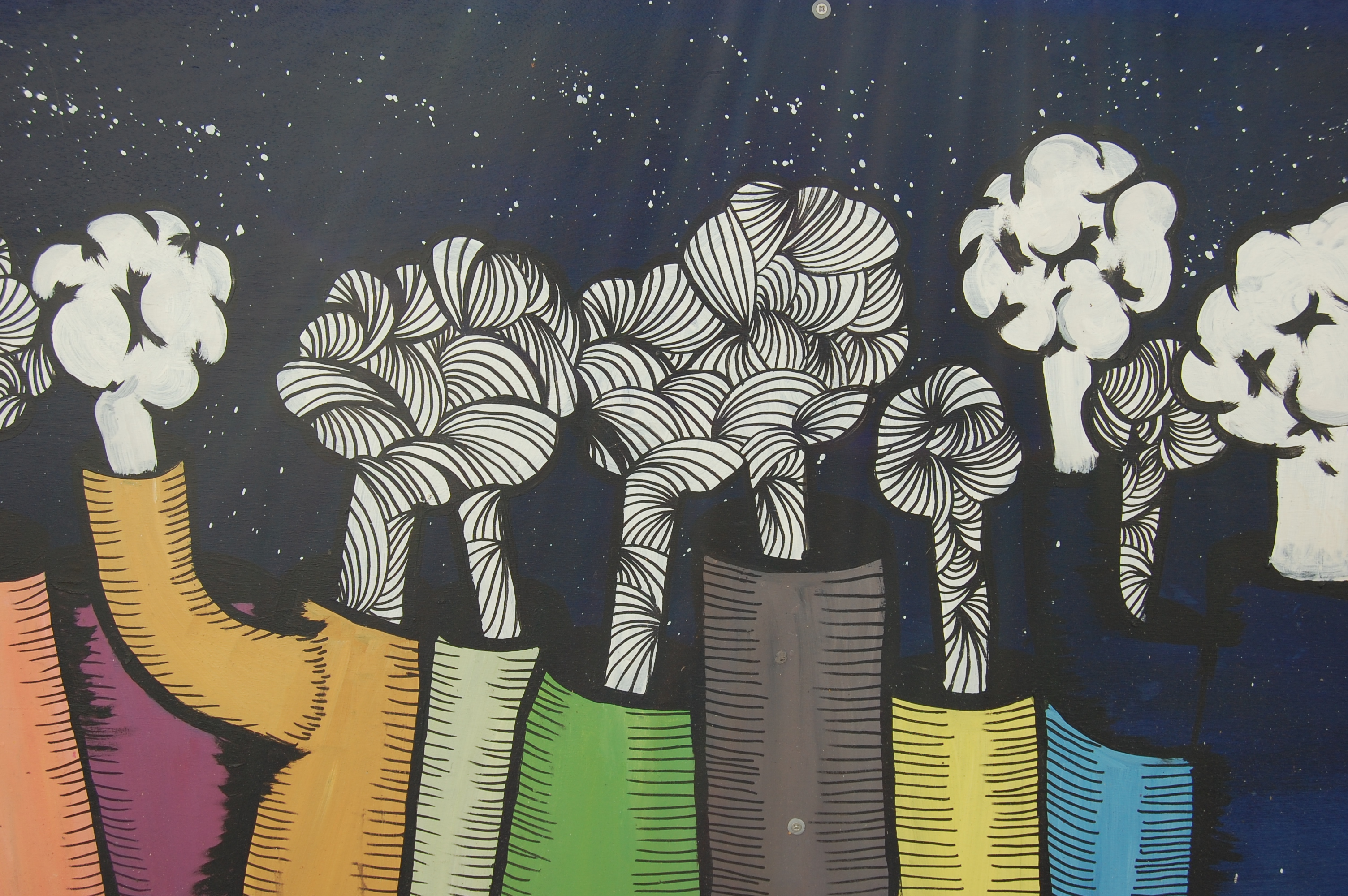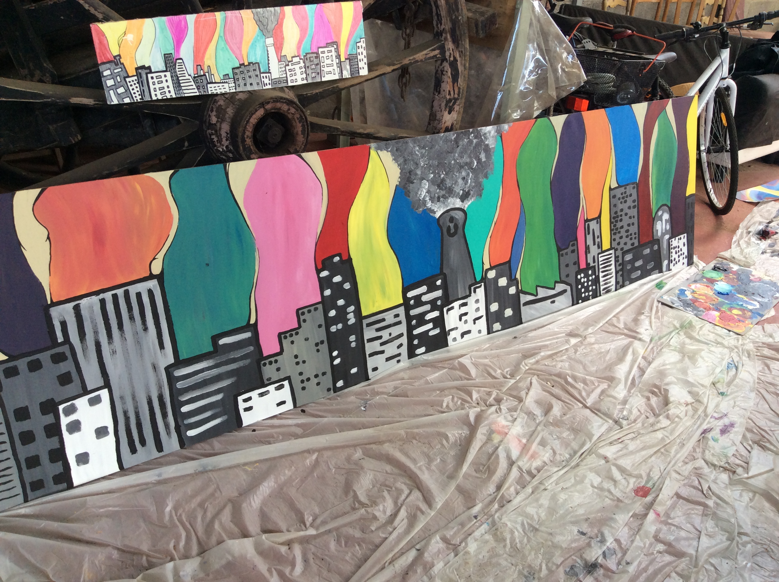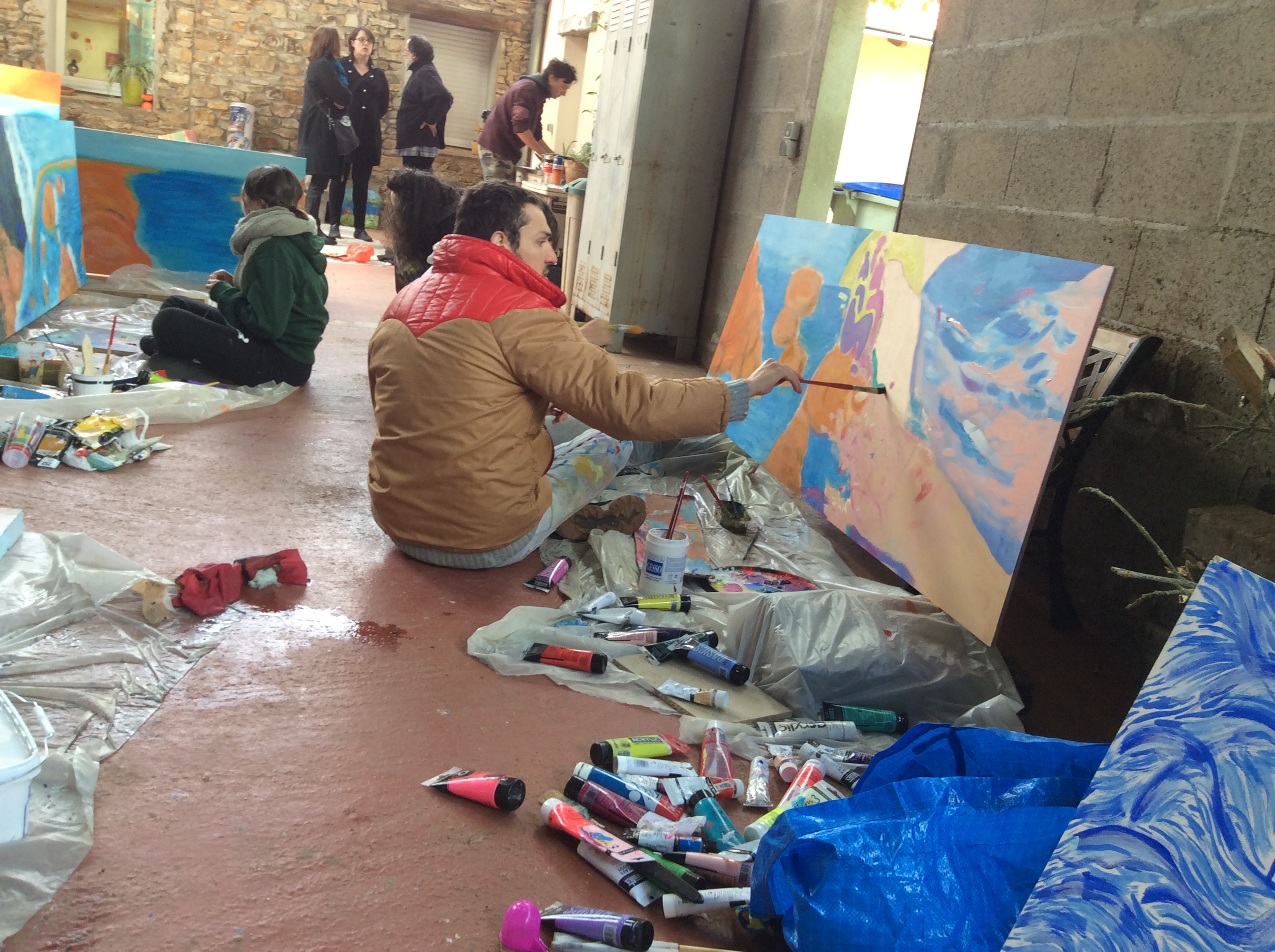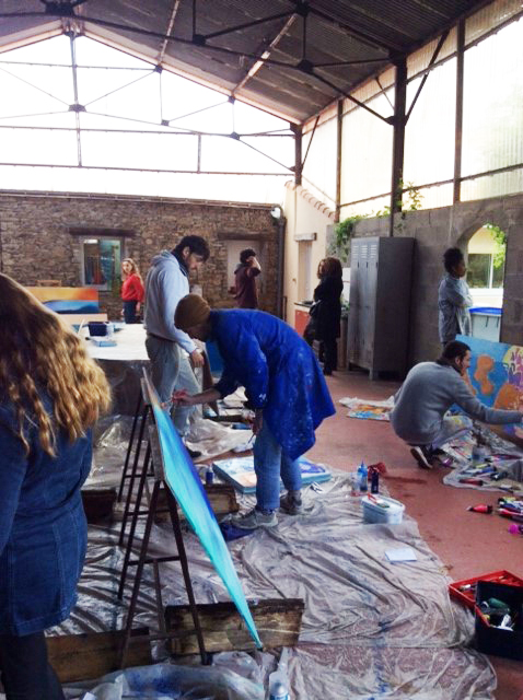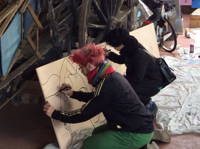 Un partenariat se met rapidement en place et la mission est confiée aux élèves de 3e année ! Après plusieurs rencontres et avoir sollicité l’avis des patients, les élèves se mettent au travail : 60 mètres de fresque à réaliser sur des panneaux de bois. Chaque élève a réalisé son « bout de mur » avec son propre univers ! pour les relier sans faute note des duos de forment pour réaliser des panneaux intermédiaires qui unifie la fresque.
