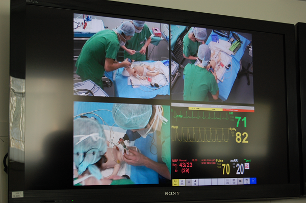 Pour garantir une adhésion parfaite aux scénarios abordés, l’environnement habituel de travail est reconstitué (bloc opératoire, salle d’accouchement…).