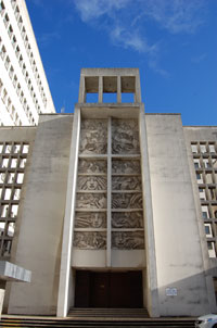 L'architecte renonce à la structure de béton armé, qu'il préfère, au profit d'une plus légère structure métallique, adaptée à la nature du terrain. La peau de pierre initialement prévue est cependant remplacée pour des raisons budgétaires, par un enrobage de béton enduit. L'écriture architecturale est simple, presque modeste : les façades lisses aux longs bandeaux de fenêtres sont animés par les verticales des baies des cages d'escalier, par des alignements de minuscules occuli, et par un jeux de saillies et de retraits.