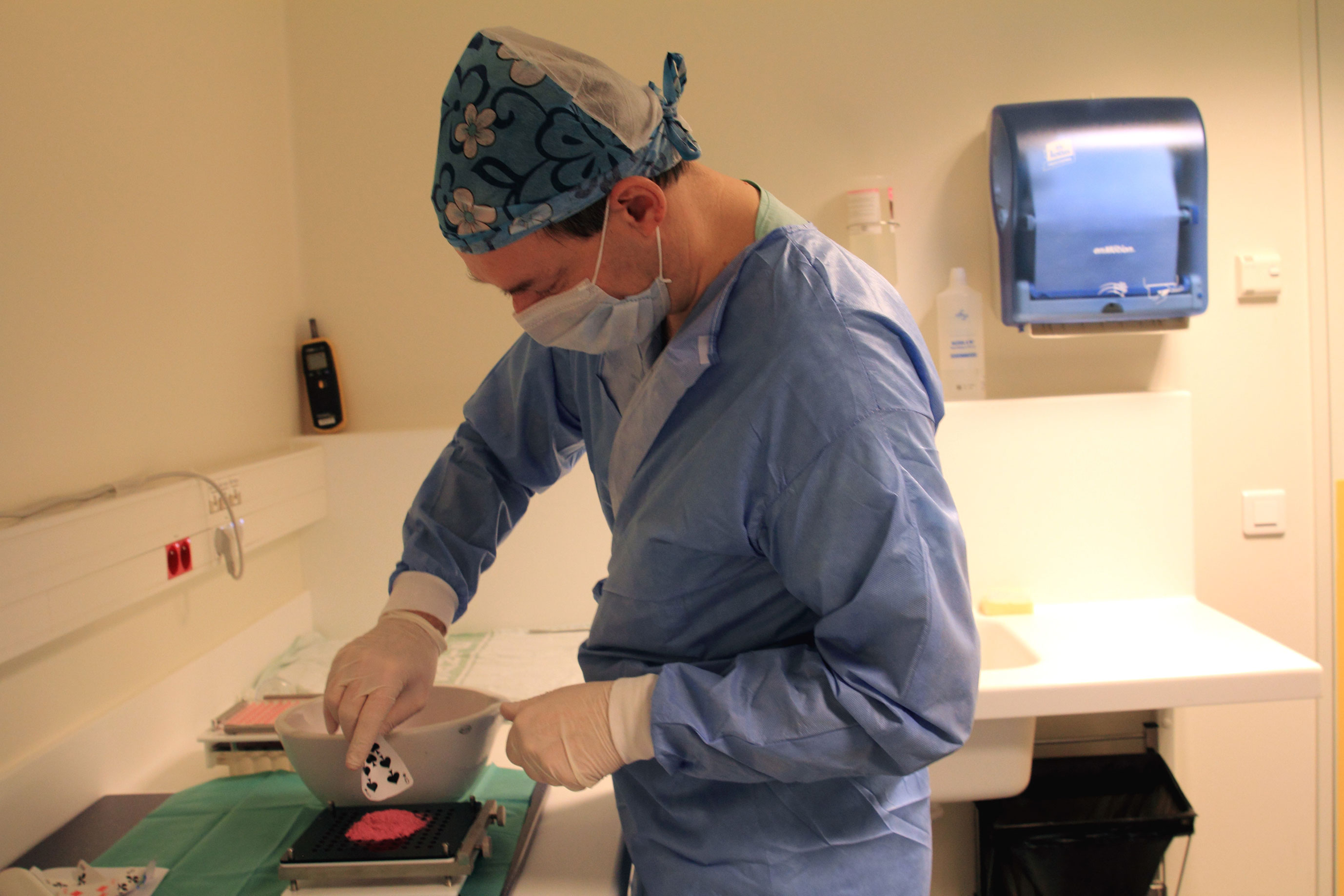 Par cette attention photographique, je veux témoigner de la qualité de leurs savoir-faire, de leur engagement professionnel en saisissant les gestes de métiers, les mains, les visages de ces hommes et de ces femmes travaillant au quotidien pour le bien-être du patient, mettant ainsi en valeur la reconnaissance d’une profession et la cohésion de toutes les équipes au service des valeurs fondamentales du monde hospitalier.