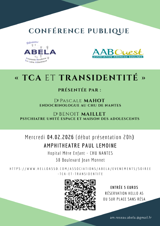Le réseau ABELA vous convie à une soirée conférence débat « TCA et transidentité » le mercredi 4 février 2026, à partir de 20h.